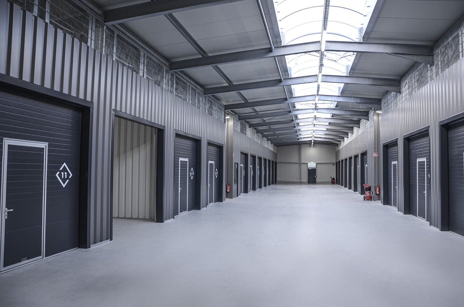 Der ca. 8,2 Meter breite, beleuchtete Mittelgang der Halle ist bequem mit dem PKW befahrbar. So entsteht ein komplett überdachter Be- und Entladebereich, der das komfortable Einlagern Ihres Hab und Gut im Trockenen ermöglicht.